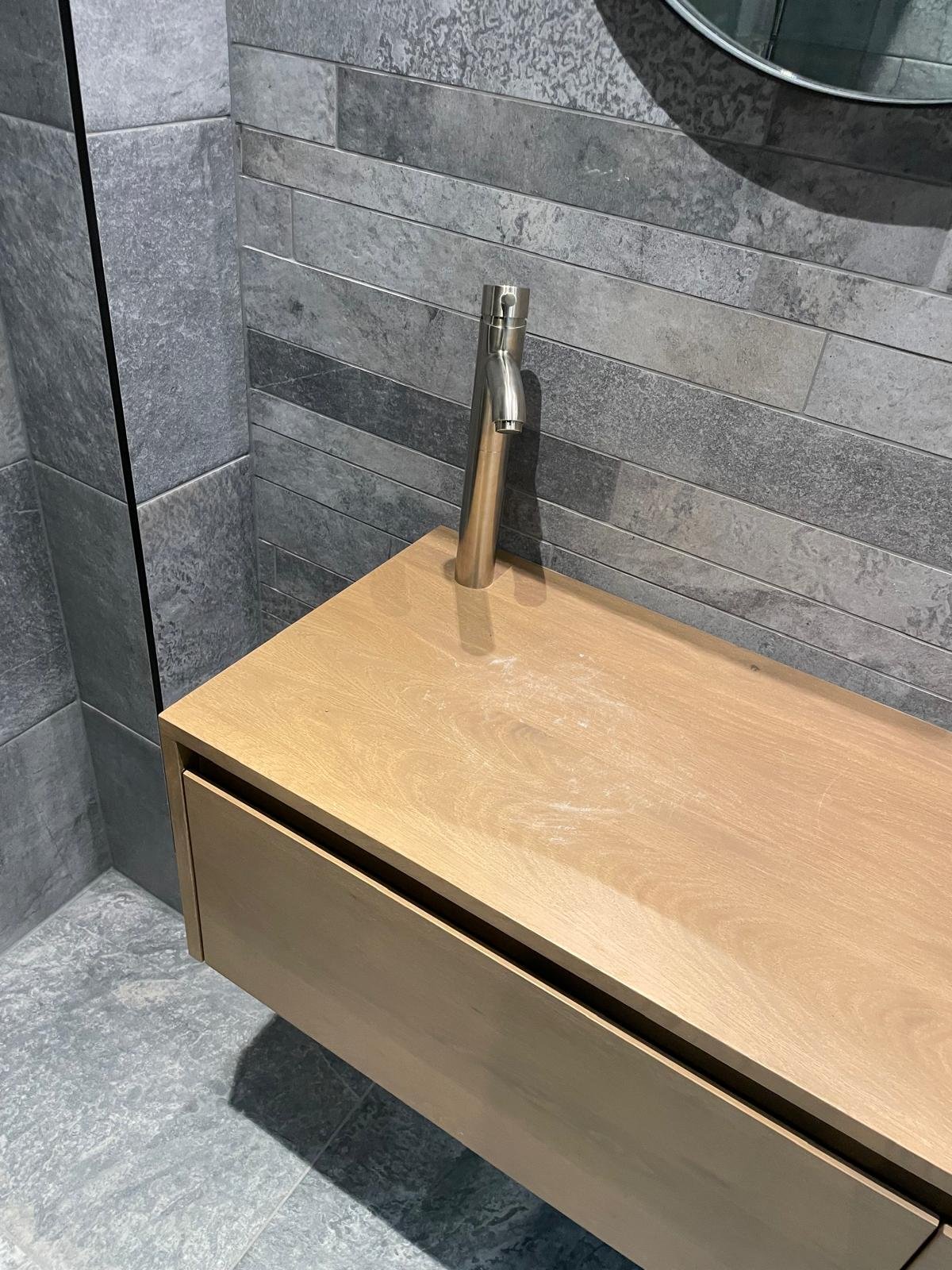 Voor een moderne uitstraling in Haagse woningen zien we vaak grootformaat tegels (zoals 60x60 of 60x120 cm) in betonlook of natuursteenlook. Deze zorgen voor minder voegen, wat de ruimte groter doet lijken en makkelijker schoon te houden is. Keramische tegels zijn de beste keuze vanwege hun duurzaamheid en vochtbestendigheid. In combinatie met vakkundig tegelwerk van onze specialisten krijgt uw badkamer een luxe hotelfinish.